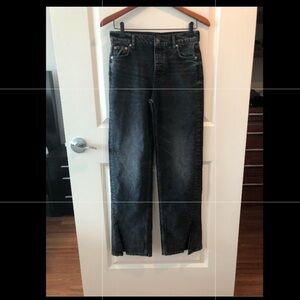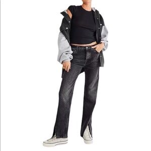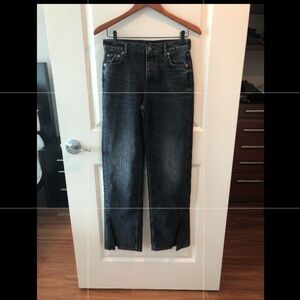 Free People Lines Slit Straight In Rockin Black Jeans Size 26