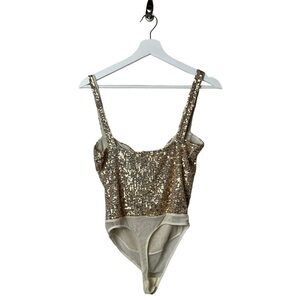 Free People Lingerie Intimately cheeky Bodysuit Sparks Fly Gold Sequin SZ XS/S