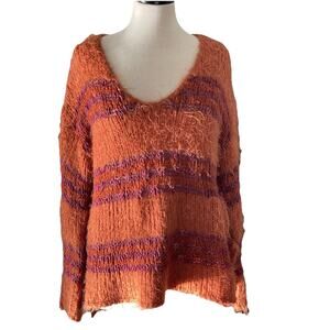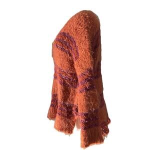 Free People "Linus" Eyelash Chunky Knit Sweater Orange Stripe Size Medium
