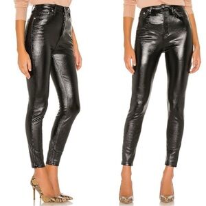 Free People Liquid Black Vinyl Jeans Size 31 Retro 70s Latex Shiny Goth Punk New