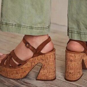 Free People Lisbon MJ Platform Sandals In Brandy Suede. NO TRADES.