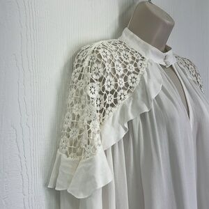 Free People - Little Bit Of Love White Lace Flowy Boho Blouse Size Small