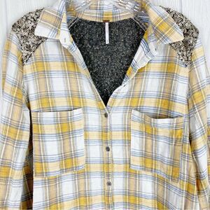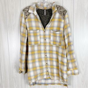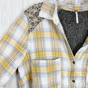 Free People | Little Bit Of Sugar Sequin Yellow Plaid Flannel Button Down Medium