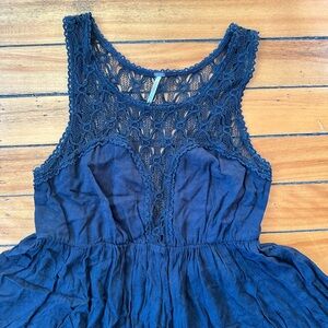 A timeless dress from Free People. Perfect for many seasons. A flattering a-line dress with beautiful crochet neckline and back. The crochet detail is sheer. Love the sweetheart neckline.