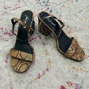 Free People Liv Block Heel Sandals in Taupe Snake sz 9