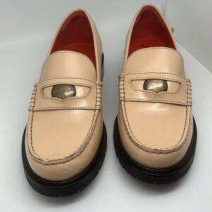Free People Liv Leather Cream Block Heels Slip on Loafer Size 7.5 - 37.5 - NEW