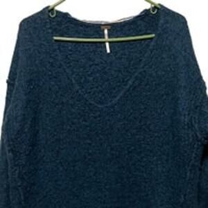 Free People Lofty Alpaca Blend Teal V-neck Sweater, good condition, some pulling on back shoulder area (see pics) size small, oversized