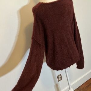 Free People Lofty Songbird Fuzzy V-Neck Sweater in Wine Red – Size S