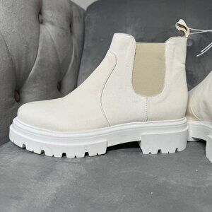 Free People Lola Lugged Sole Chalk Chelsea Boot Size 38/8