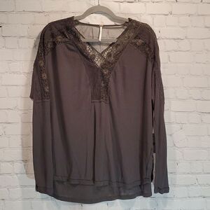 New with tag no flaws. Washed black in color with lace top. High low hem with side slights. Lightweight with low v neck.