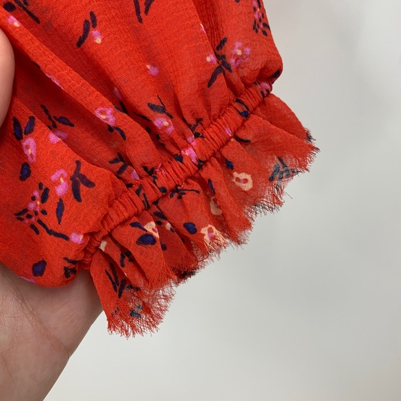 Free People Lolita Cropped Peasant Top in Red Sz S