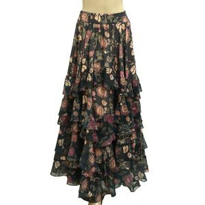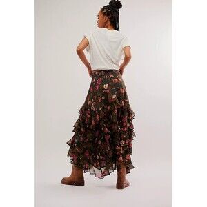 Free People Lolita Maxi Skirt Floral Printed Smocked Tiered Vintage L New 283181