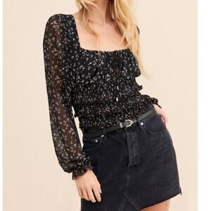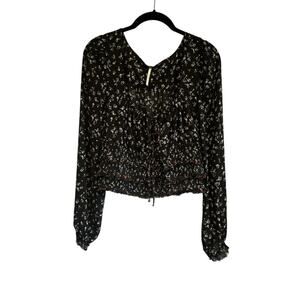 Free People Lolita Smocked Crop Long Sleeve Top. Size Large, EUC
