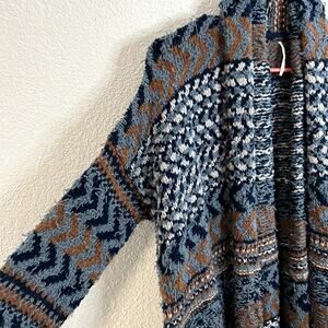 Free People Lona Wrap Cardigan Womens Size Small No Belt Blue Brown White