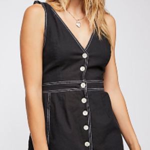 Rigid cotton mini dress featuring contrast stitch detailing.