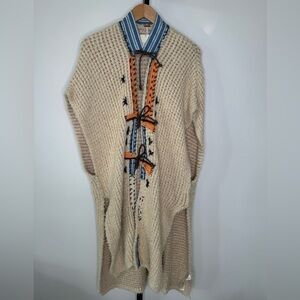 Free People Add the ideal western-inspired touch to any look with this so cool poncho featured in a longline, slouchy silhouette and chunky, waffle-knit fabrication with defined front detailing for added dimension. Add a touch of boho-chic to your wardrobe with this exquisite Free People Lonestar Poncho. Crafted by the popular brand, Free People, this poncho seamlessly combines comfort, style, and a touch of wanderlust.