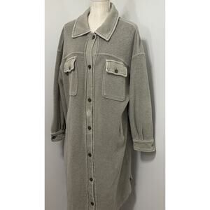 Free People Long Ruby Jacket Pockets Casual Relaxed Shacket Grey Grunge SMALL