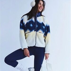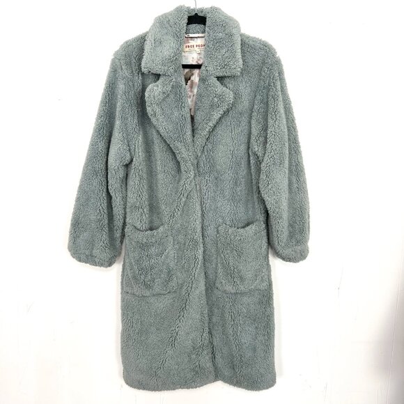 Free People Long Sherpa Coat Teddy Blue Floral Lined XS