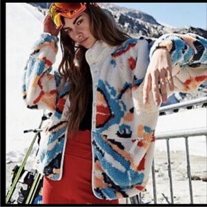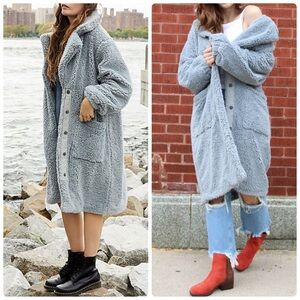 Free People Long Sherpa Coat Teddy Blue Floral Lined