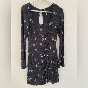 Free People Long Sleeve Celia Mini Dress Black Polka Dot Floral Gathered Jersey