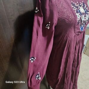 Free People embroidered dress with long sleeves. Tent style boho relaxed fit, pullover style,