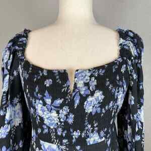 Free People Long Sleeve Jaymes Square Neck Midi Dress Size M Medium Blue Floral