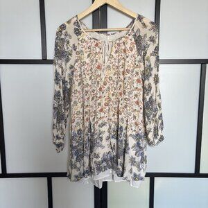 Free People Long Sleeve Mini Dress Size XS Peasant Boho Hippie Romantic Floral