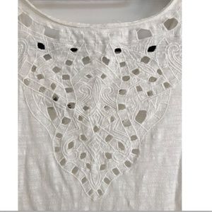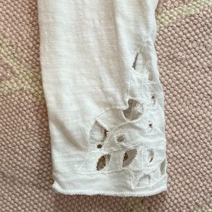 Long sleeve free people top, never been worn! Gorgeous crochet type open lace style on sleeves, chest, and back. Three buttons on chest. Perfect condition. Size small.