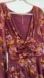 ree People Morning Light Printed Floral Mini Dress Size small. Purple-maroon and gold floral silky dress with drawstring tie cinched bodice in a stand-out dark maroon-purple and gold-yellow floral print. V-neckline; Fit & flare silhouette. Pullover style. Smocked at back and cuffs; ruched drawstring at center front.