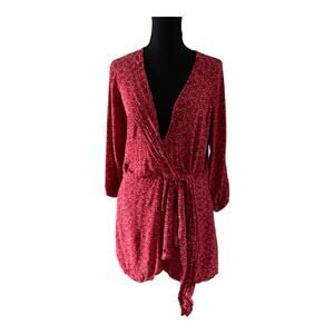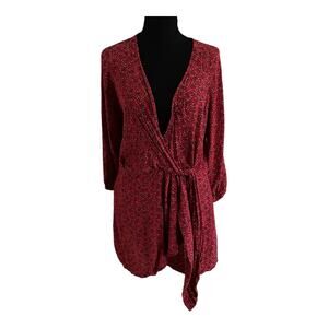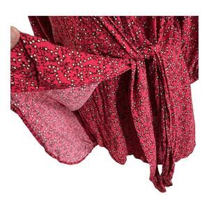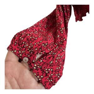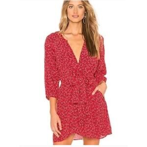 Free People Long Sleeve Tie Red Ditzy Floral Print Summer V Neck Clara Dress