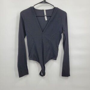 Free People Long Sleeve V Neck Bodysuit Women Size Small Petite Black