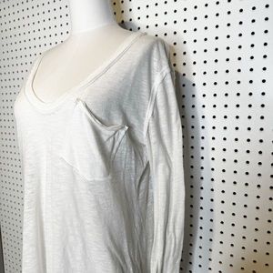 Free People | Long Sleeve White Pocket Tee w/ Scoop Neck, Oversized Fit