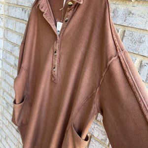 Free People Long Sleeve Willow Antique Oak Polo Knit Tunic Women's Size L