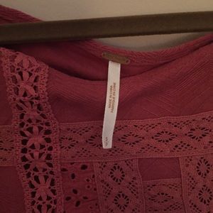 Slightly cropped red top with crochet detail. Slightly worn but perfect condition.