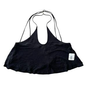 Free People Long Weekend Black Linen Blend Flowy Keyhole Crop Top NWT Size Small