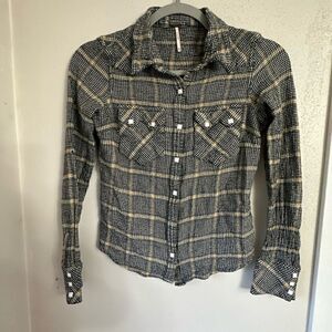 Free People Long Sleeve Button/Snap Down Shirt Blue Plaid Women