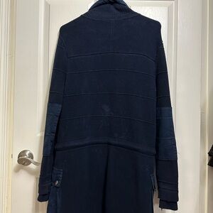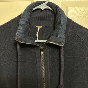 Free People Longline Sweater Jacket Coat Navy Knit Utility Pockets Size XS
