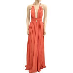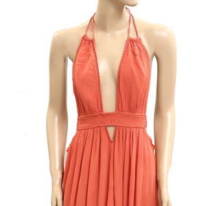 Free People Look Into the Sun Maxi Dress Halter Beach Smocked Cutout S 283185