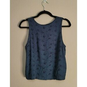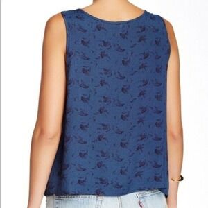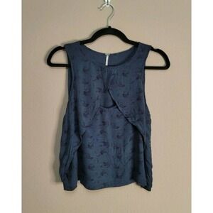 Free People Look Through Printed Crinkle Sleeveless Round Neck Top Blue Size XS