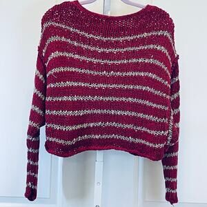 Free People Loose Knit Crochet Sweater - Women Size Small - Maroon and Gray