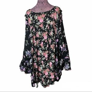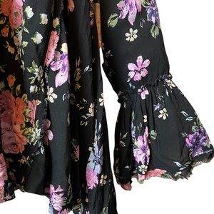 Free People Sz S Loretta Black Floral Top.