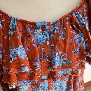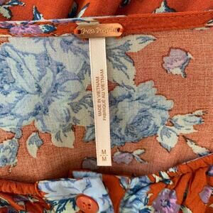 Free People Loretta Orange Blue Floral Print Boho Tunic Top Size M. Good pre-owned condition. No flaws noted.