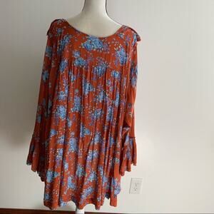 Free People Loretta Orange Blue Floral Print Boho Tunic Top Size M