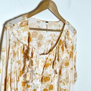 Free People Loretta Tunic Top Orange Floral Womens XS Oversized Ruffled