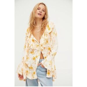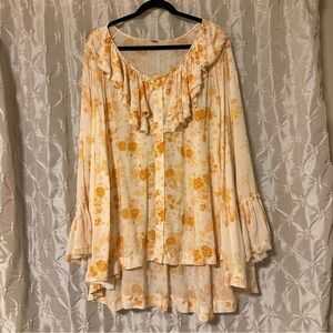 Free People Loretta Tunic Top Tea Combo Cream Yellow Floral Print Ruffle Boho