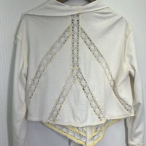 Free People - Lost Cause Cream And Yellow Crochet Design Cardigan Size Medium