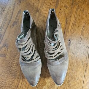 Keywords: Free People, Brown Booties, Leather Booties, Ankle Boots, Pointed Toe, Strappy Booties, Block Heel, Bohemian Style, Size 41, European Size, Distressed Leather, Casual Boots, Womens Boots, Western, Boho
