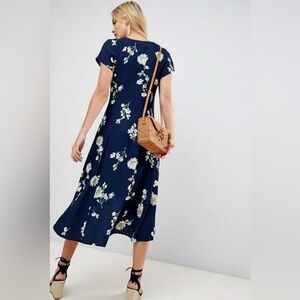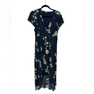 Free People Lost in Your Floral Wrap Midi Blue Asymmetrical Button Dress