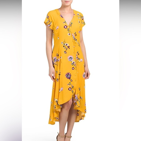 Free People Lost in You Golden Yellow Floral Print Midi Dress Size M NWT