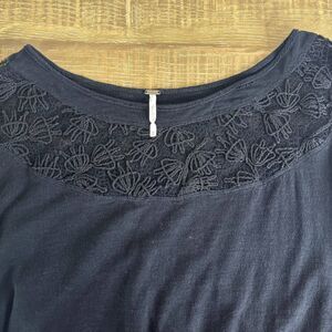DETAILS: cotton; boat neckline with lace detail; short ruffle sleeves with lace detail; boxy fit; hip length